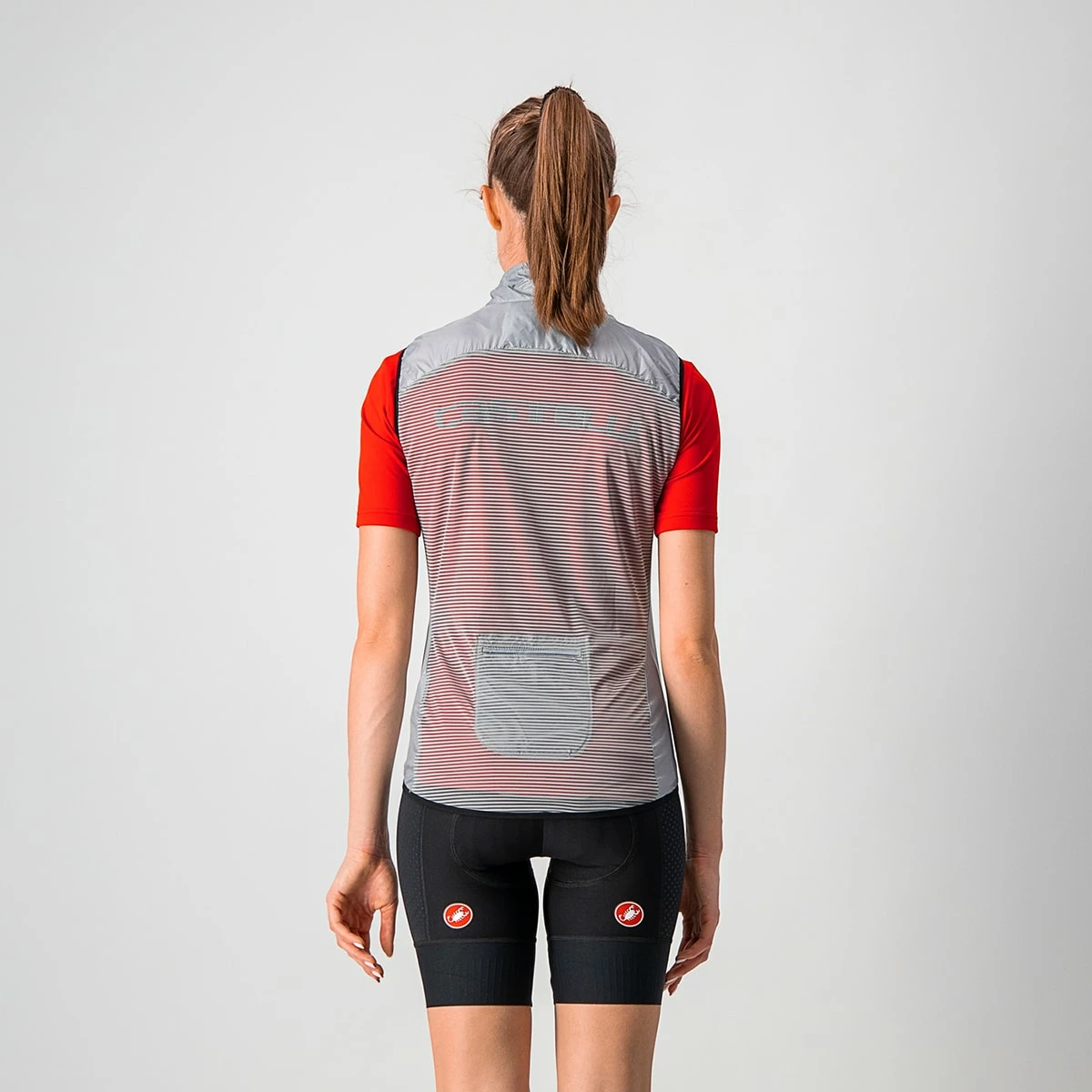 The ARIA W VEST by CASTELLI offers lightweight protection from cold headwinds. The highly packable windbreaker vest for women is quickly at hand when riding down a hill. Perfect as emergency vest.