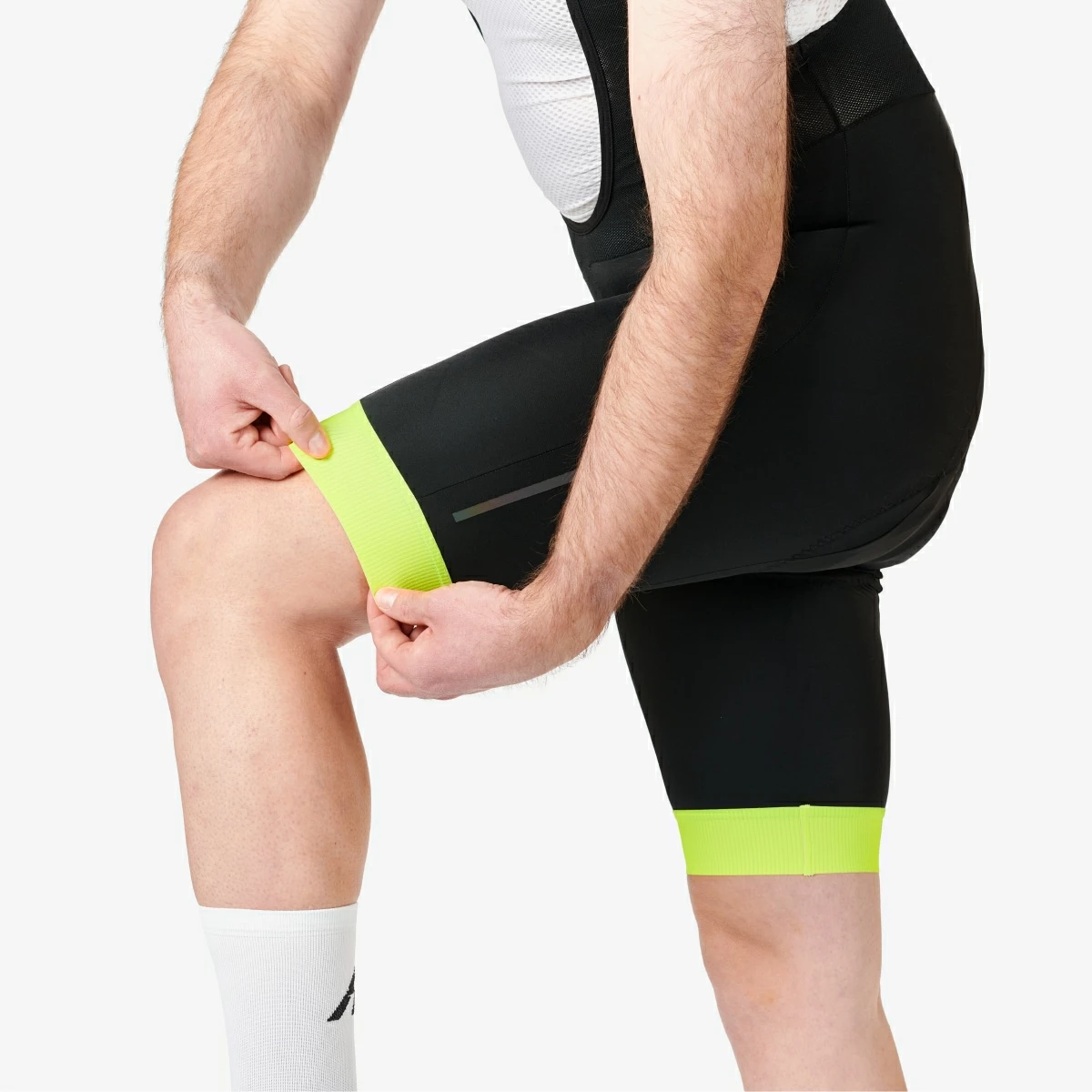 The ROSE CORE FLUO bib II bib shorts feature eye-catching leg cuffs with electric yellow colour print. They are the perfect functional basic shorts for your road cycling kit. The bib shorts are ideal for summer rides – lightweight stretch material and breathable mesh straps ensure a pleasantly dry feeling and good ventilation. The ROSE CORE bib II shorts have been further developed and optimised. Enhanced seam lines and longer legs increase comfort. The elastic, wider leg cuffs with a light silicone gripper on the inside fit close around your legs and reduce slipping of the bib shorts while pedalling. Thanks to the soft, comfortable R CLASSIC M seat pad, the bib shorts are well suited for short to medium distances. They are absolutely essential for your cycling wardrobe and can be combined with all styles from the ROSE CORE FLUO collection.
